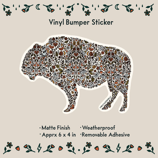 Floral Buffalo Vinyl Bumper Sticker