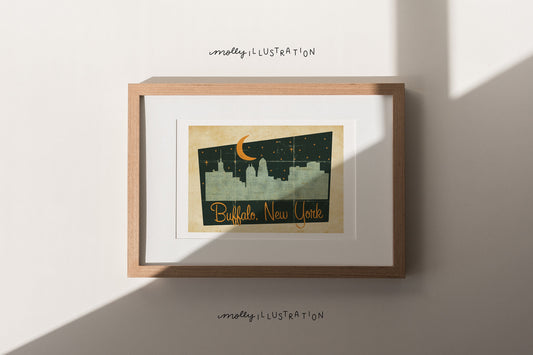 Buffalo, New York Skyline Midcentury Art Print