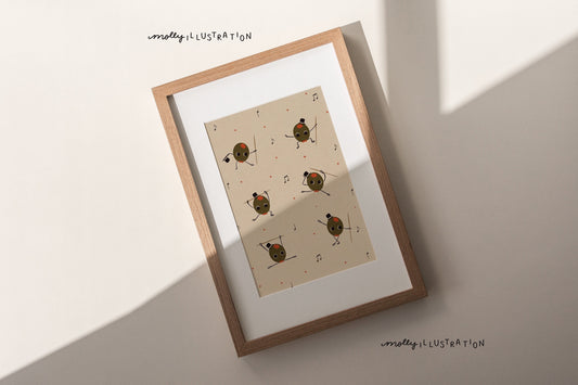 Pimento the Dancing Olive Vintage Inspired Art Print