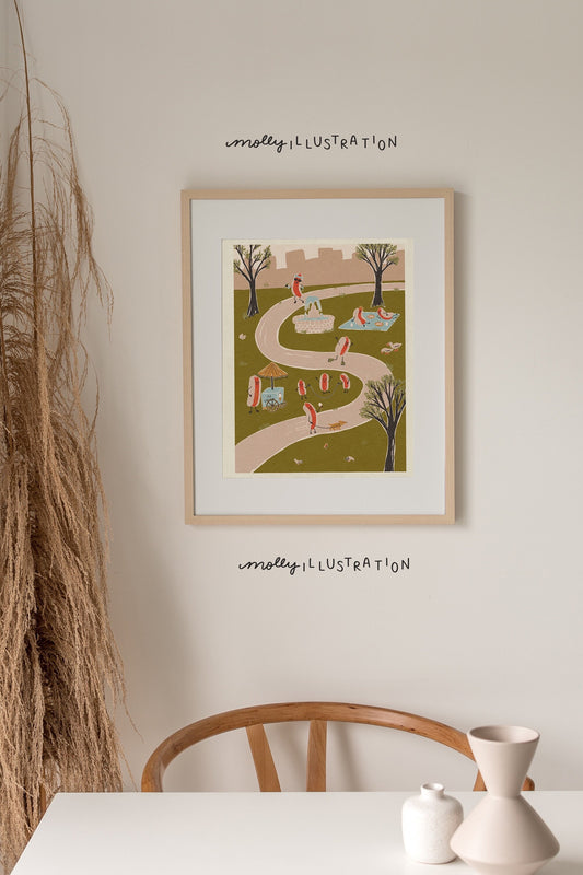 Hot Dog! Summer in the City Cartoon Art Print