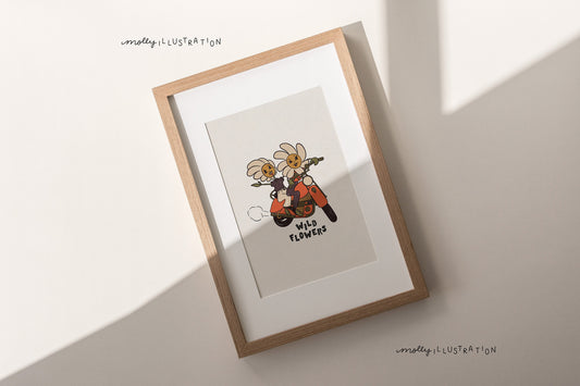 Wild Flowers Illustrated Cartoon Art Print