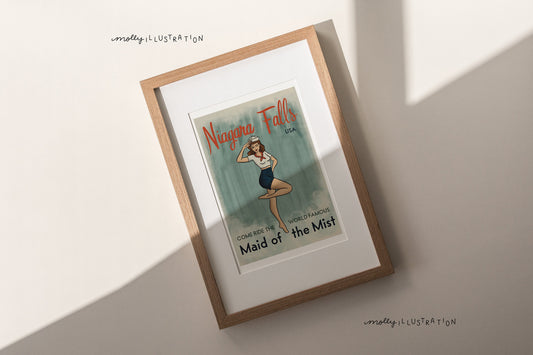 Niagara Falls Maid of the Mist Vintage Inspired Pin Up Art Print