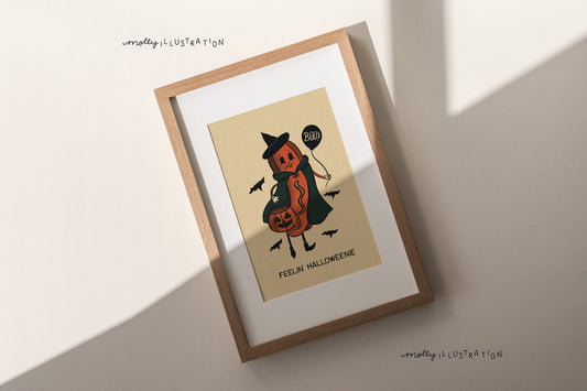 Feelin' Halloweenie Vintage Inspired Hot Dog Halloween Art Print
