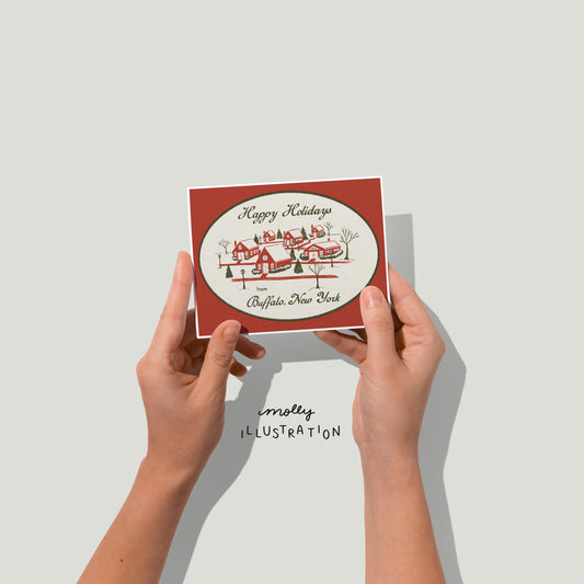 Happy Holidays Buffalo NY Vintage Style Christmas Card