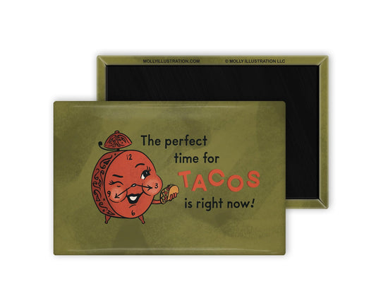 Perfect Time for Tacos Cartoon Illustrated Magnet